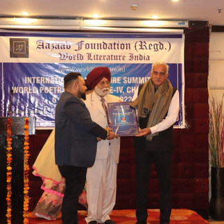 Azad Foundation y World Literature India han organizado un gran Festival en el que participaron alrededor de 70 poetas y escritores de diferentes países. El presidente de la junta, el Dr. JERNAIL SINGH AANAND, dijo que participaron poetas de todas partes de la India y presentaron poemas sobre el tema principal de la conferencia: la crisis global y el papel de la literatura en la era actual.